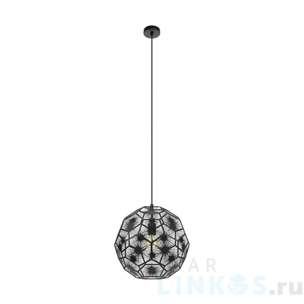 Поставщик рекомендует использовать лампы накаливания с цоколем E27. Подвесной светильник Eglo Skoura 1 39618 в используется в интерьере гостиной с установкой на потолок.