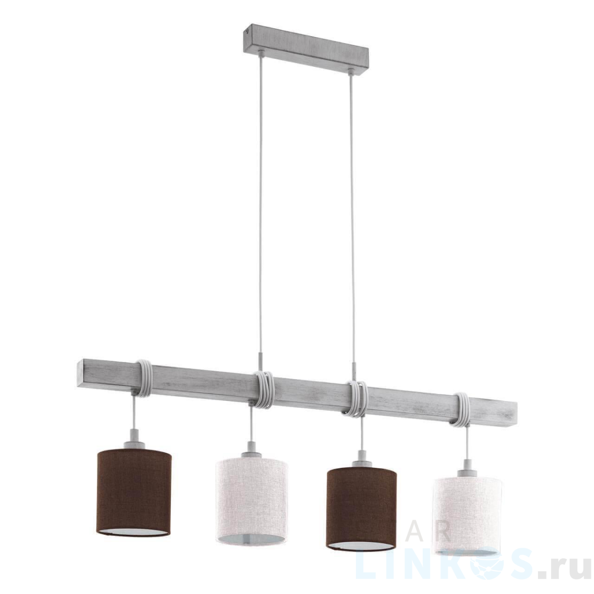 Поставщик рекомендует использовать лампы накаливания с цоколем E27 для освещения площади 13,3 м2. Подвесной светильник Eglo Townshend 2 49927 в используется в интерьере спальни с установкой на потолок.