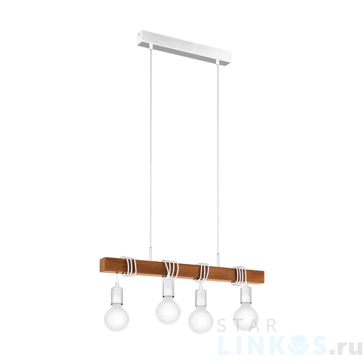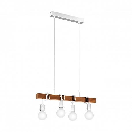 Поставщик рекомендует использовать лампы накаливания с цоколем E27 для освещения площади 13,3 м2. Подвесной светильник Eglo Townshend 33164 в стиле лофт используется в интерьере кухни с установкой на потолок.