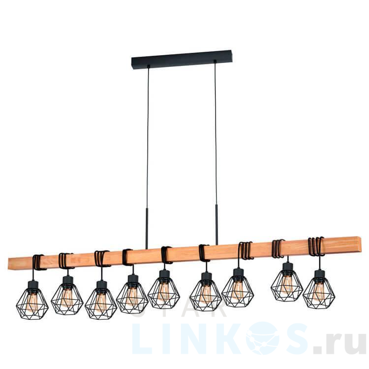 Поставщик рекомендует использовать лампы накаливания с цоколем E27. Подвесной светильник Eglo Townshend 43134 в стиле лофт используется в интерьере гостиной с установкой на потолок.