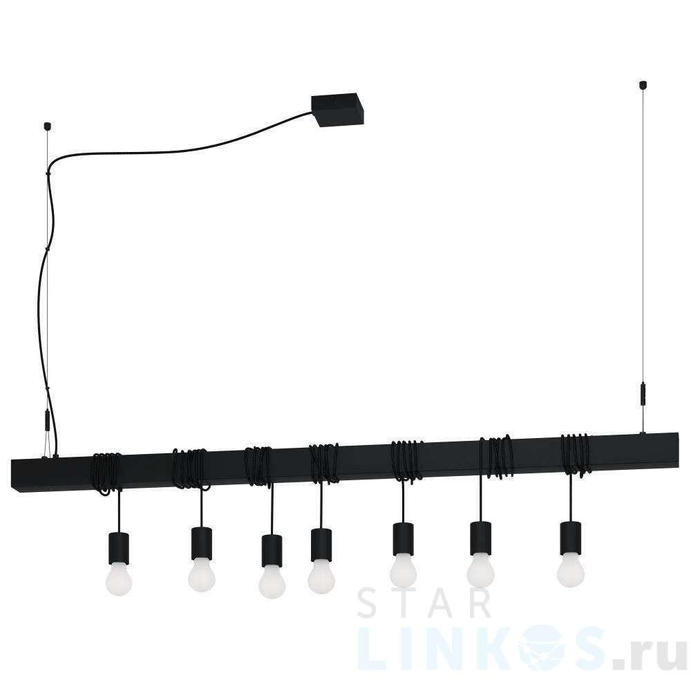 Поставщик рекомендует использовать лампы накаливания с цоколем E27. Подвесной светильник Eglo Townshend-B 39938 в стиле лофт используется в интерьере кафе и ресторанов с установкой на потолок.