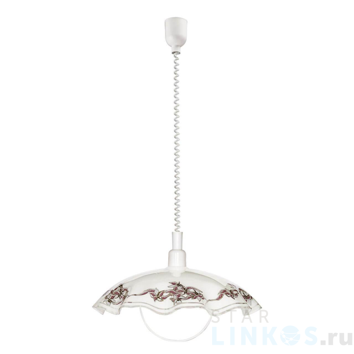 Поставщик рекомендует использовать лампы накаливания с цоколем E27 для освещения площади 3,3 м2. Подвесной светильник Eglo Vetro 3041 в стиле прованс используется в интерьере кухни с установкой на потолок.