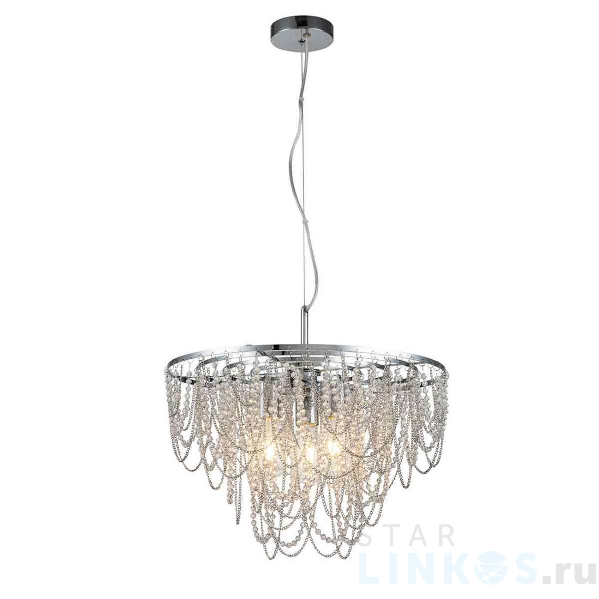 Поставщик рекомендует использовать лампы накаливания с цоколем E27 для освещения площади 9 м2. Подвесной светильник Escada 10173/3S в используется в интерьере гостиной с установкой на потолок.