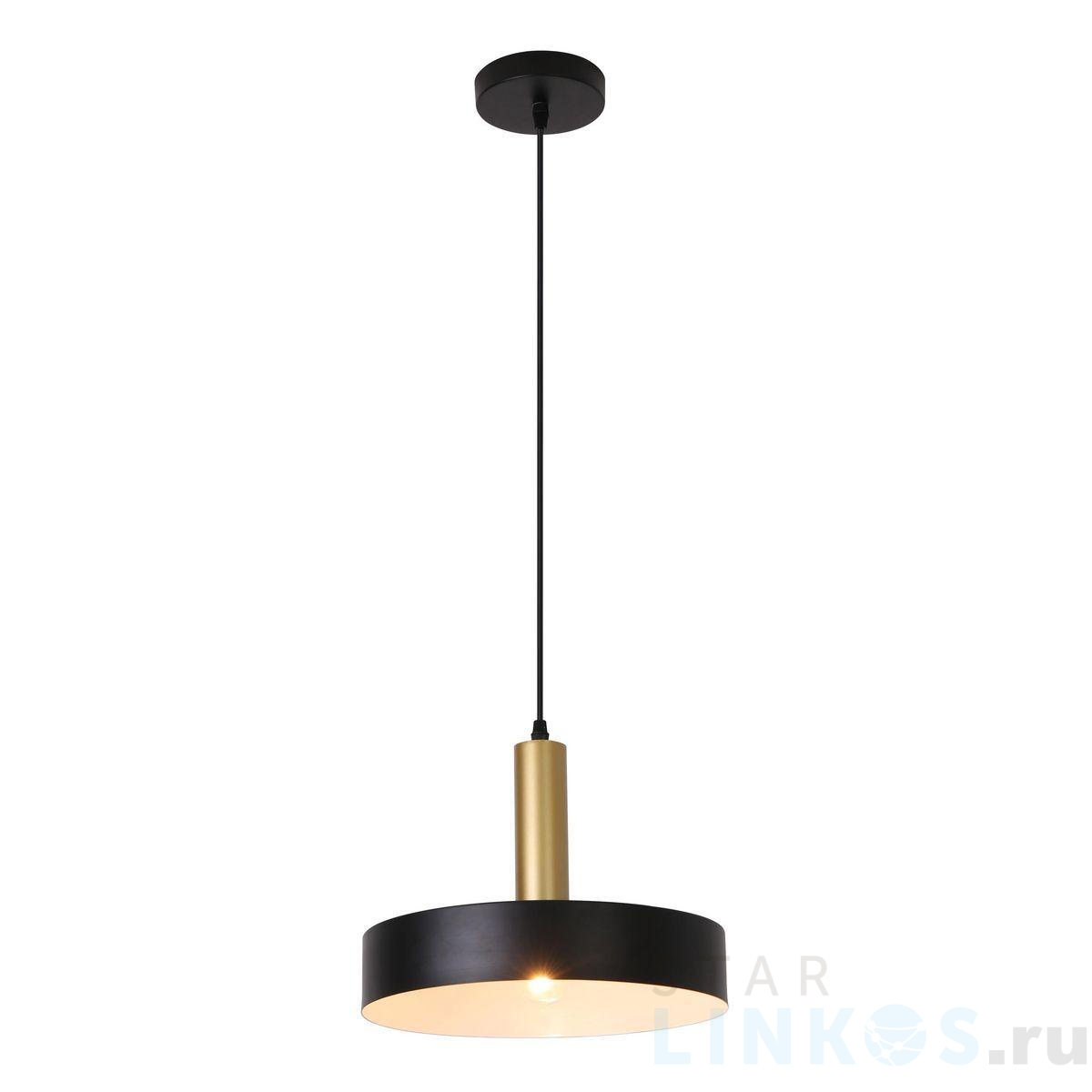 Поставщик рекомендует использовать лампы накаливания с цоколем E27 для освещения площади 3 м2. Подвесной светильник Escada 1110/1S Black в современном стиле используется в интерьере кухни с установкой на потолок.