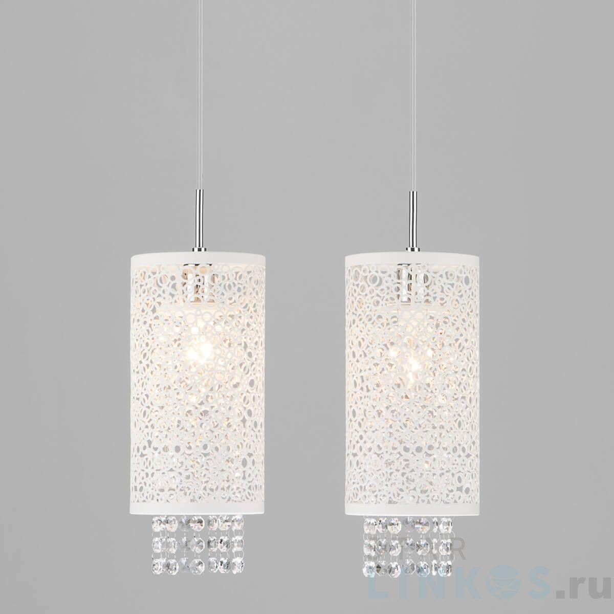 Поставщик рекомендует использовать лампы накаливания с цоколем E14. Подвесной светильник Eurosvet 1181/2 хром в стиле прованс используется в интерьере спальни с установкой на потолок.