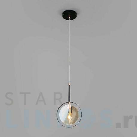 Поставщик рекомендует использовать лампы накаливания с цоколем E14 для освещения площади 3,3 м2. Подвесной светильник Eurosvet Gallo 50121/1 черный в современном стиле используется в интерьере спальни с установкой на потолок.