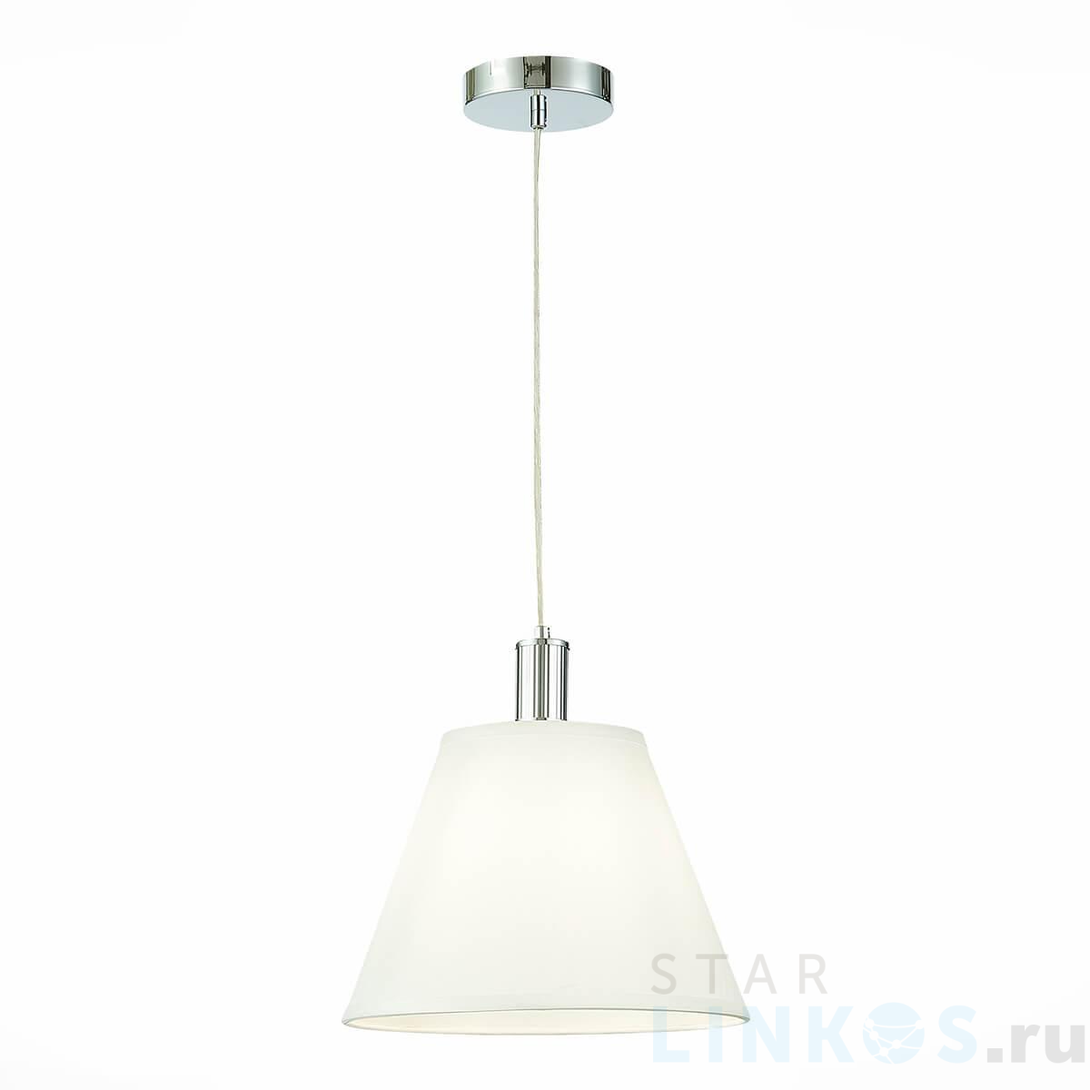 Поставщик рекомендует использовать лампы накаливания с цоколем E27 для освещения площади 3 м2. Подвесной светильник Evoluce Monza SLE111303-01 в современном стиле используется в интерьере спальни с установкой на потолок.