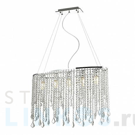 Поставщик рекомендует использовать лампы накаливания с цоколем E14 для освещения площади 11,1 м2. Подвесной светильник Favourite Rain 1692-5P в используется в интерьере гостиной с установкой на потолок.