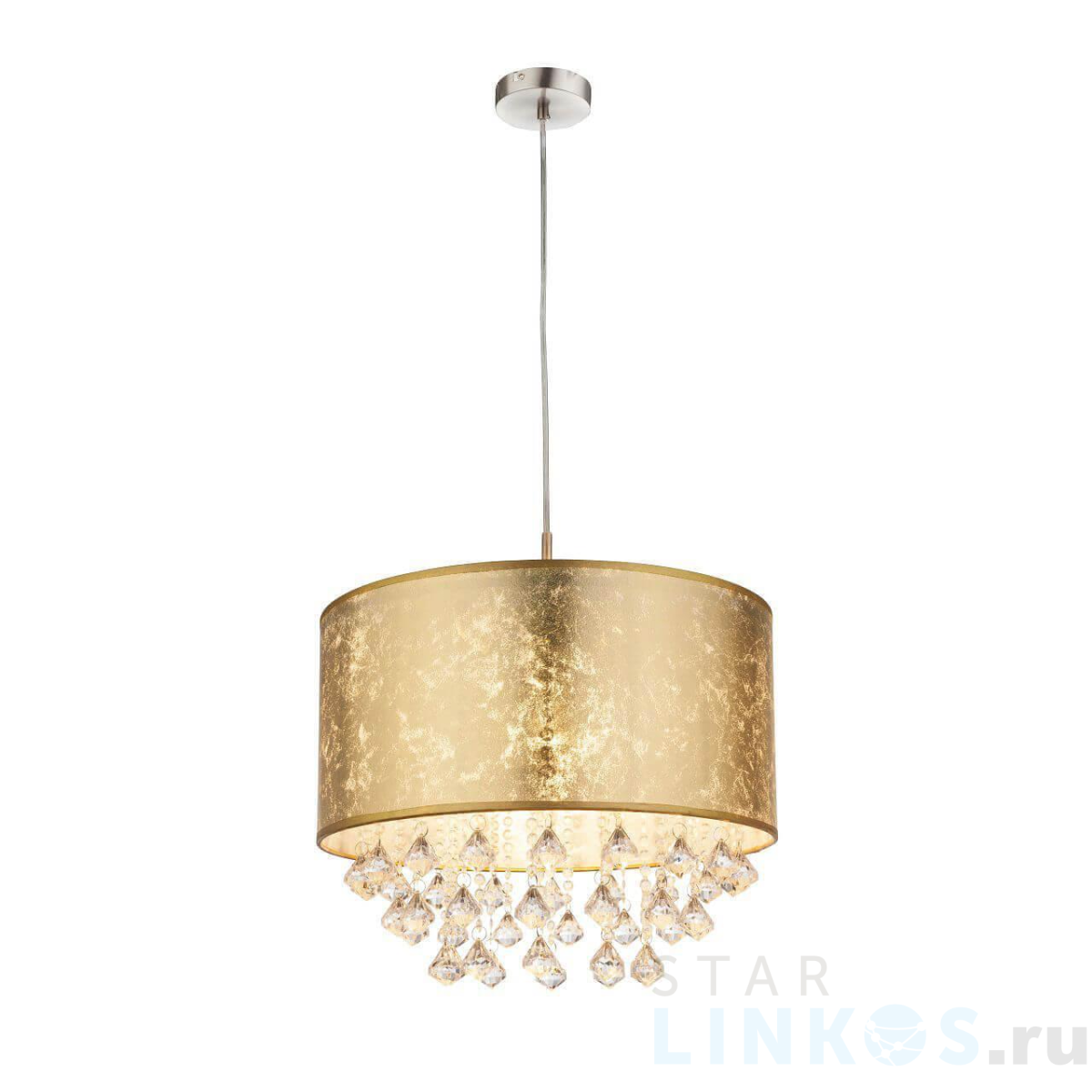 Поставщик рекомендует использовать лампы накаливания с цоколем E27 для освещения площади 3,3 м2. Подвесной светильник Globo Amy 15187H3 в стиле арт-деко используется в интерьере спальни с установкой на потолок.