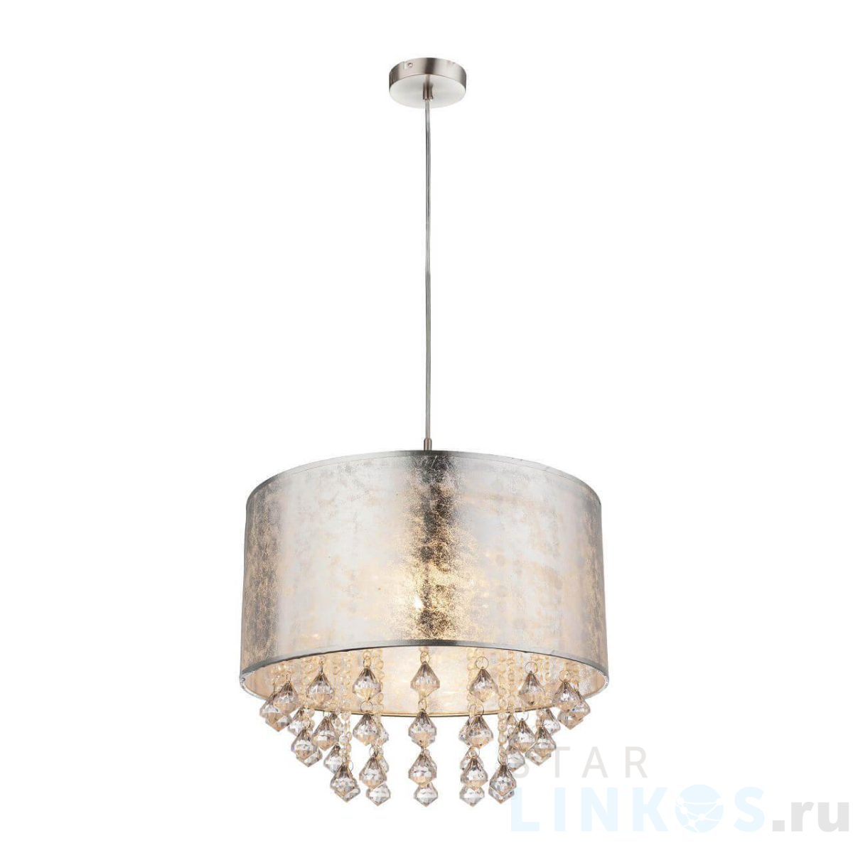 Поставщик рекомендует использовать лампы накаливания с цоколем E27 для освещения площади 3,3 м2. Подвесной светильник Globo Amy 15188H3 в стиле арт-деко используется в интерьере спальни с установкой на потолок.