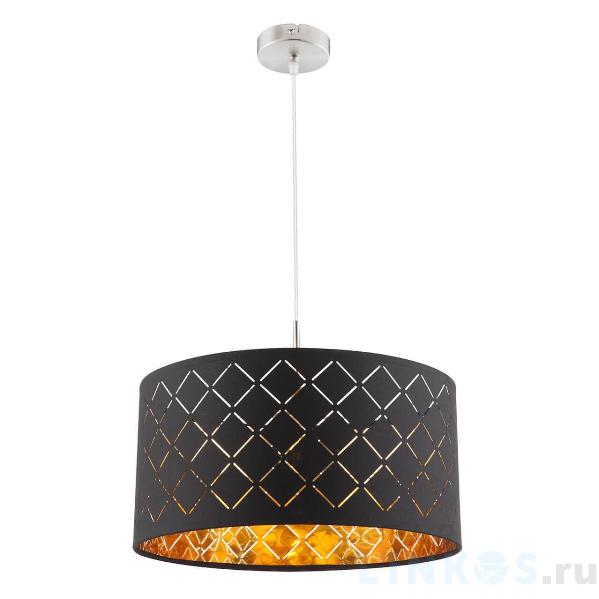 Поставщик рекомендует использовать лампы накаливания с цоколем E27 для освещения площади 3,3 м2. Подвесной светильник Globo Clarke 15229H в используется в интерьере кафе и ресторанов с установкой на потолок.