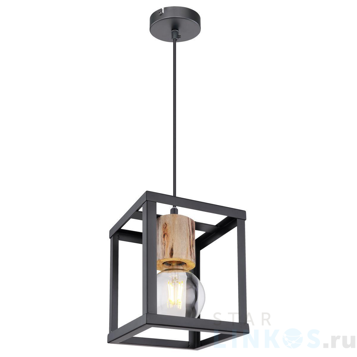 Поставщик рекомендует использовать лампы накаливания с цоколем E27 для освещения площади 6 м2. Подвесной светильник Globo Hagar 15476H в стиле лофт используется в интерьере кафе и ресторанов с установкой на потолок.