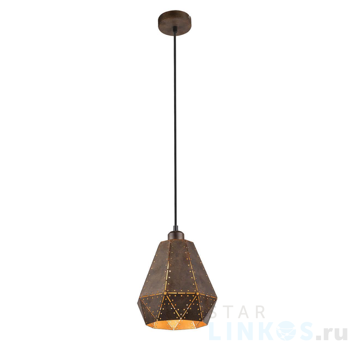 Поставщик рекомендует использовать лампы накаливания с цоколем E27 для освещения площади 3,3 м2. Подвесной светильник Globo Ruby 15276 в стиле лофт используется в интерьере прихожей с установкой на потолок.