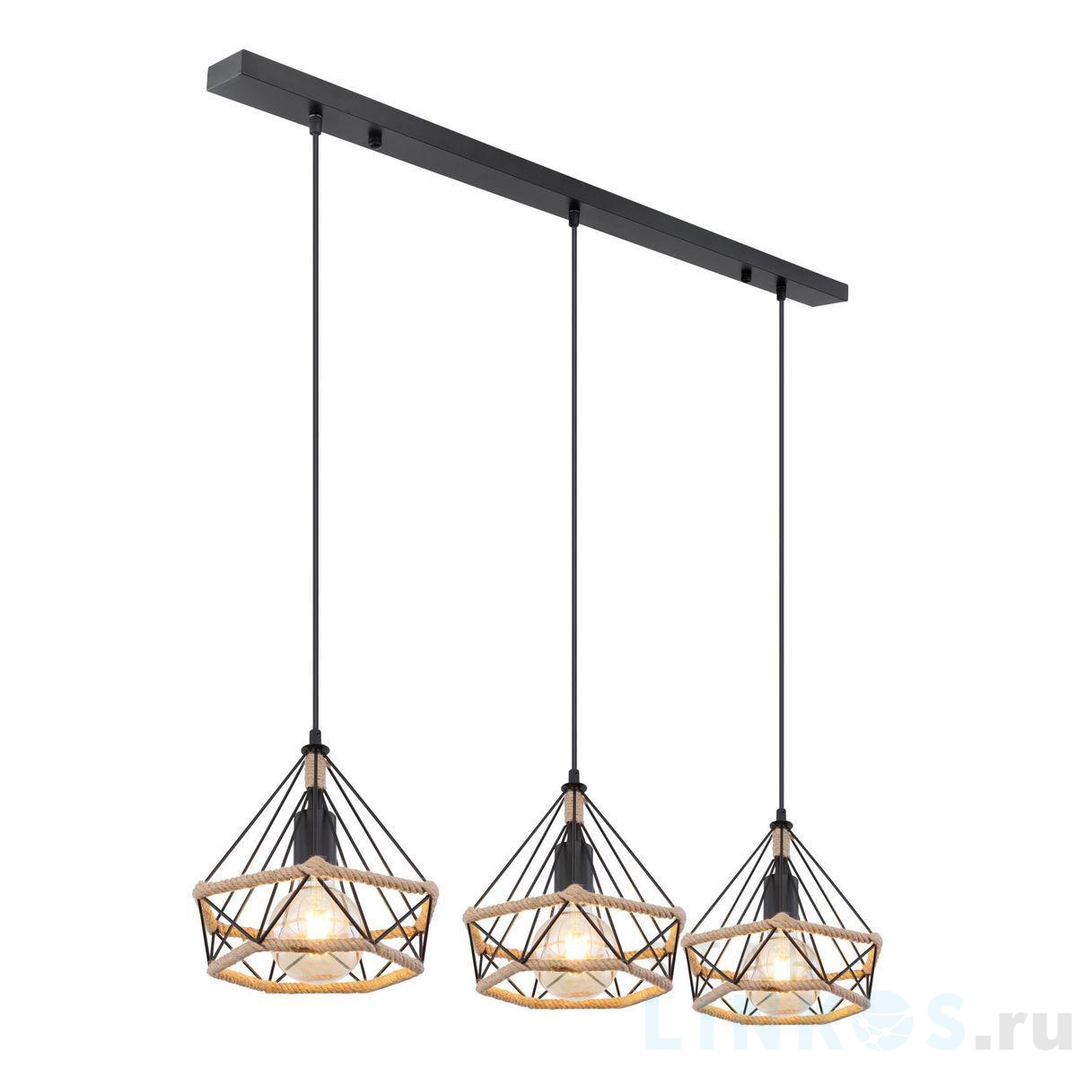 Поставщик рекомендует использовать лампы накаливания с цоколем E27. Подвесной светильник Globo Ulleu 69029-3H2 в кантри-стиле используется в интерьере кухни с установкой на потолок.