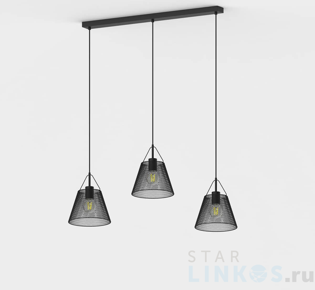Поставщик рекомендует использовать лампы накаливания с цоколем E27 для освещения площади 10 м2. Подвесной светильник Hiper Grid H155-4 в стиле лофт используется в интерьере кухни с установкой на потолок.