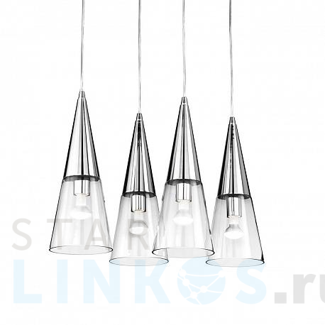 Поставщик рекомендует использовать лампы накаливания с цоколем E14 для освещения площади 6,7 м2. Подвесной светильник Ideal Lux Cono SP3 Cromo 112367 в используется в интерьере кухни с установкой на потолок.