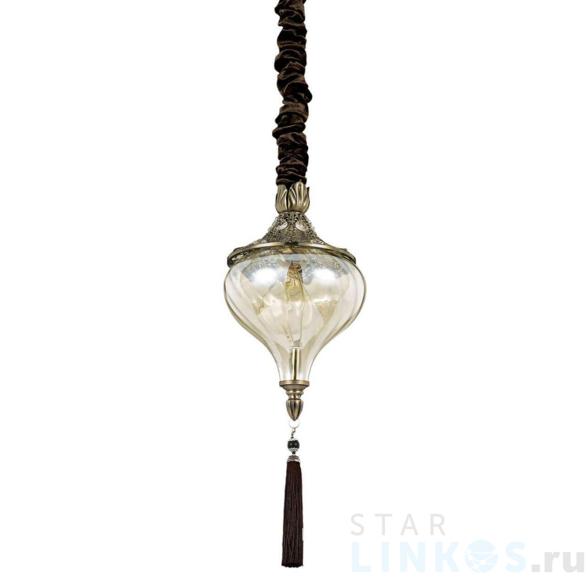 Поставщик рекомендует использовать лампы накаливания с цоколем E27 для освещения площади 3,3 м2. Подвесной светильник Ideal Lux Harem SP1 115979 в восточном стиле используется в интерьере спальни с установкой на потолок.