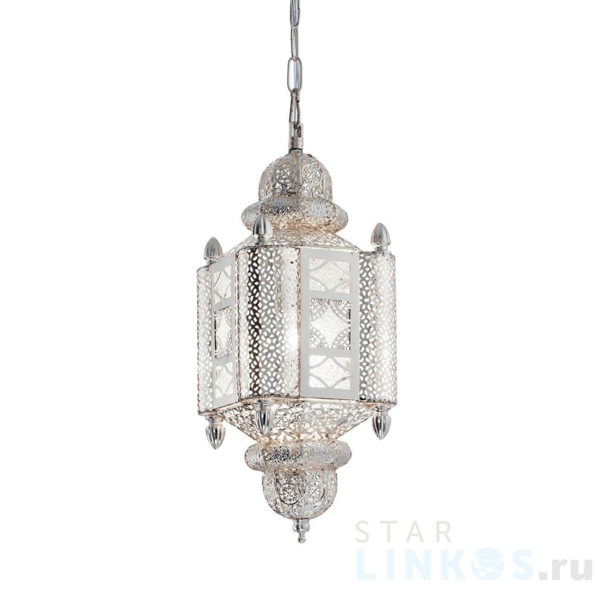 Поставщик рекомендует использовать лампы накаливания с цоколем E27 для освещения площади 3,3 м2. Подвесной светильник Ideal Lux Nawa-2 SP1 138343 в восточном стиле используется в интерьере прихожей с установкой на потолок.