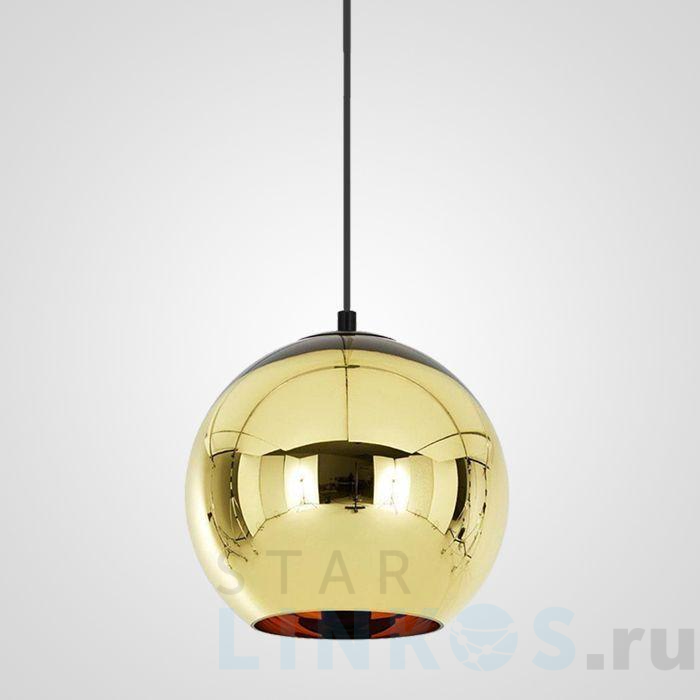 Поставщик рекомендует использовать лампы накаливания с цоколем E27 для освещения площади 4 м2. Подвесной светильник Imperium Loft Copper Shade 182696-22 в современном стиле используется в интерьере гостиной с установкой на потолок.