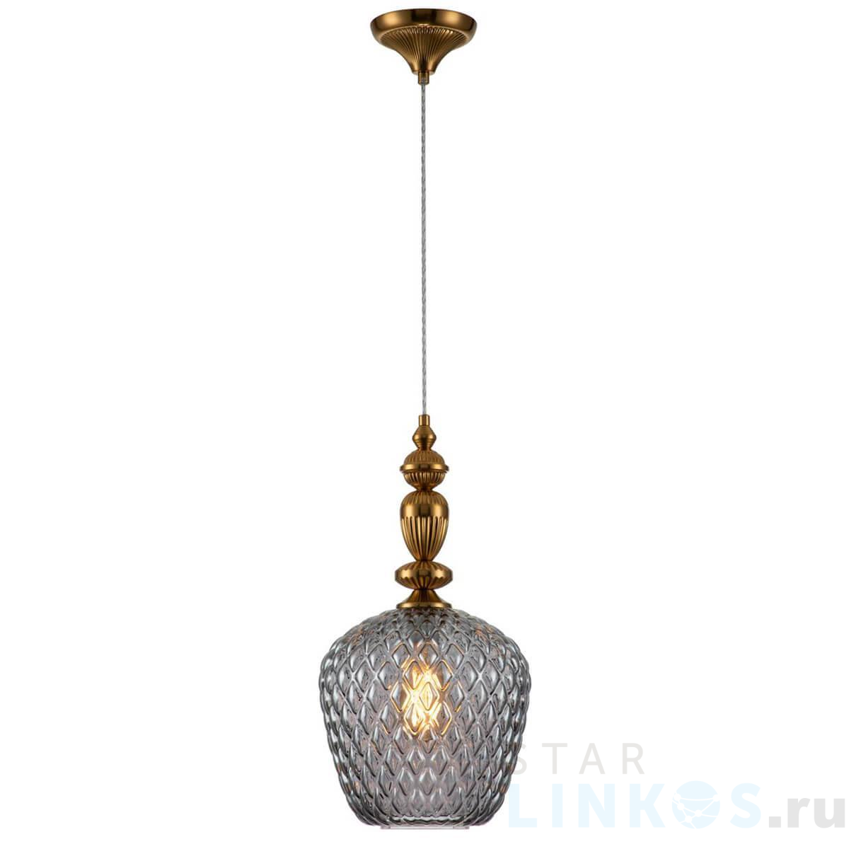 Поставщик рекомендует использовать лампы накаливания с цоколем E27 для освещения площади 3 м2. Подвесной светильник Indigo Annata 11010/1P Smoke V000128 в классическом стиле используется в интерьере кухни с установкой на потолок.