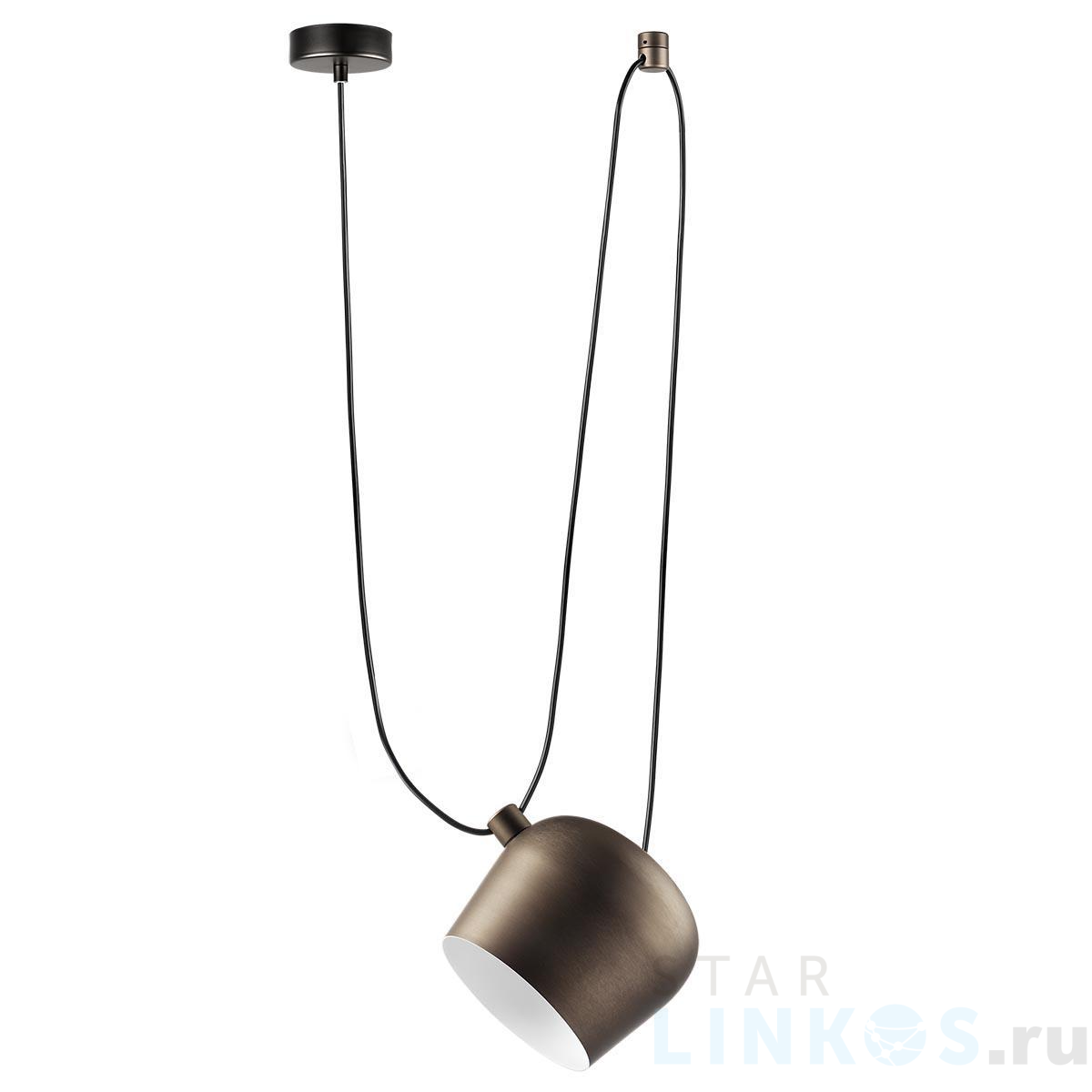 Поставщик рекомендует использовать лампы накаливания с цоколем E27 для освещения площади 2,2 м2. Подвесной светильник Lightstar Omega 727113 в стиле лофт используется в интерьере гостиной с установкой на потолок.