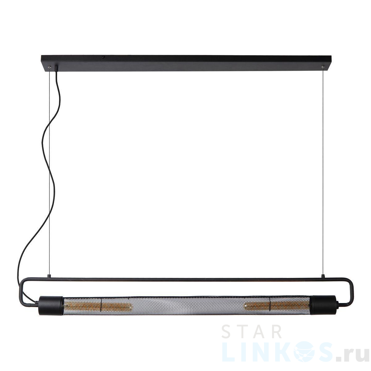 Поставщик рекомендует использовать лампы накаливания с цоколем E27. Подвесной светильник Lucide Calixt 05433/02/30 в стиле лофт используется в интерьере кафе и ресторанов с установкой на потолок.