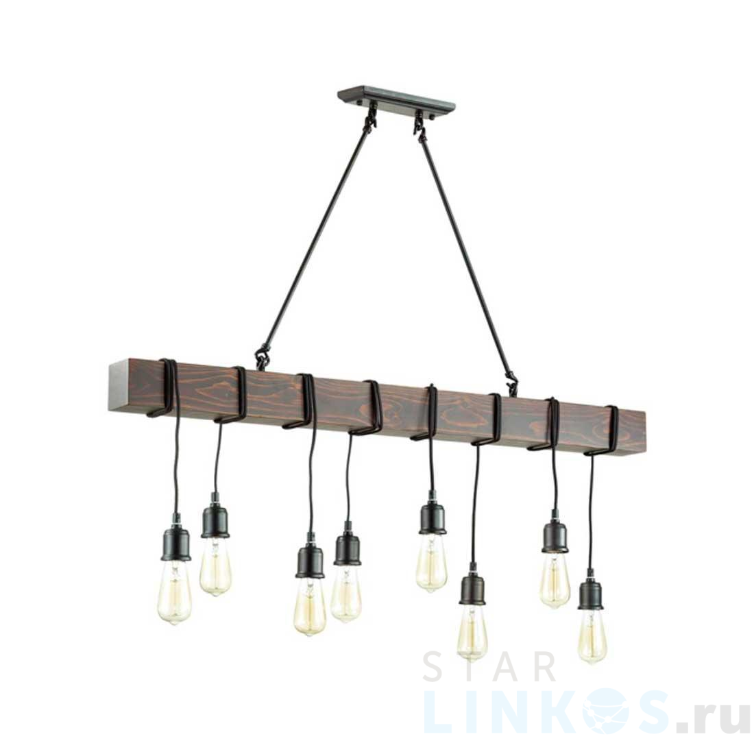 Поставщик рекомендует использовать лампы накаливания с цоколем E27 для освещения площади 26,7 м2. Подвесной светильник Lumion Lofti Klaus 3740/8 в кантри-стиле используется в интерьере гостиной с установкой на потолок.
