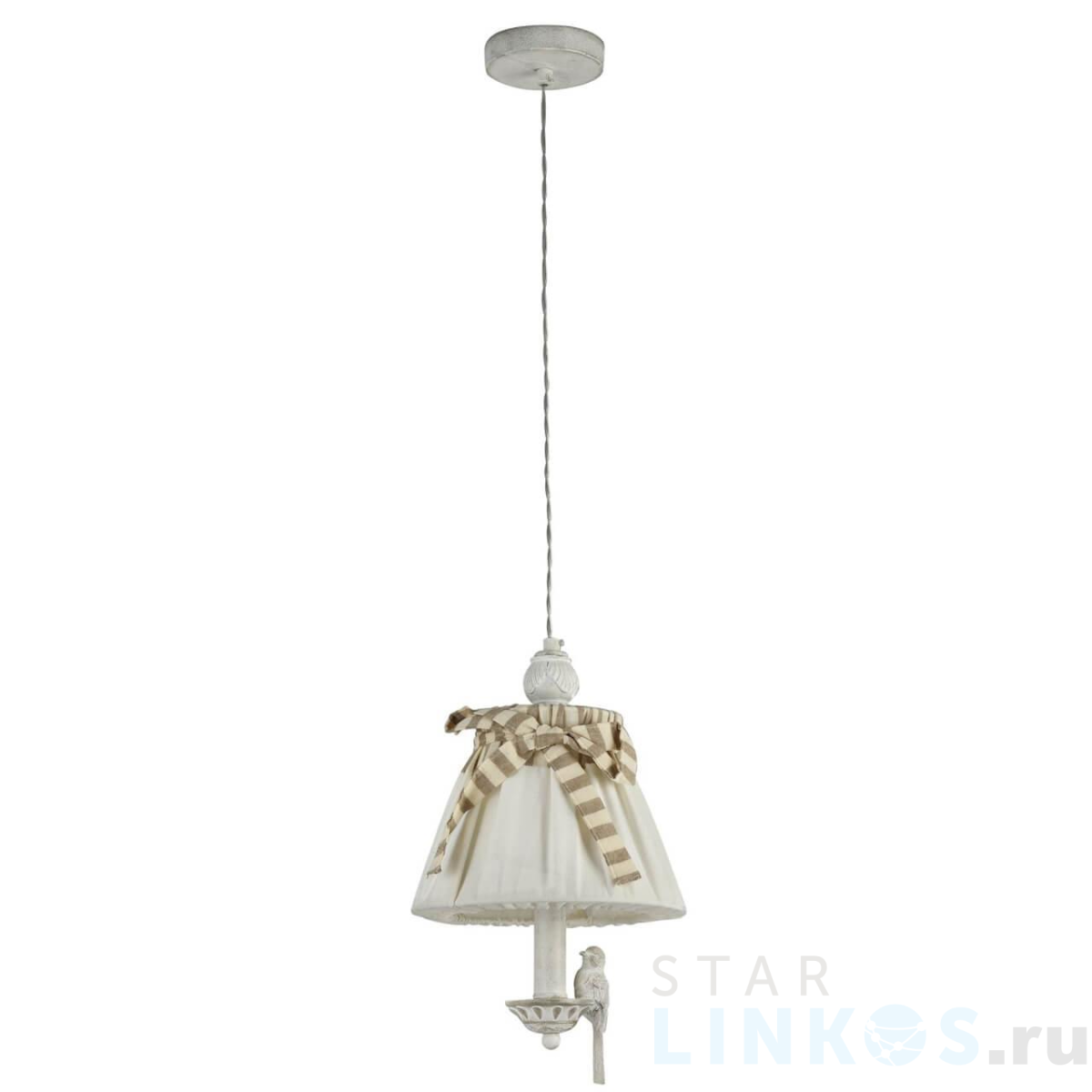 Поставщик рекомендует использовать лампы накаливания с цоколем E14 для освещения площади 2,2 м2. Подвесной светильник Maytoni Bird ARM013-PL-01-W в стиле прованс используется в интерьере спальни с установкой на потолок.