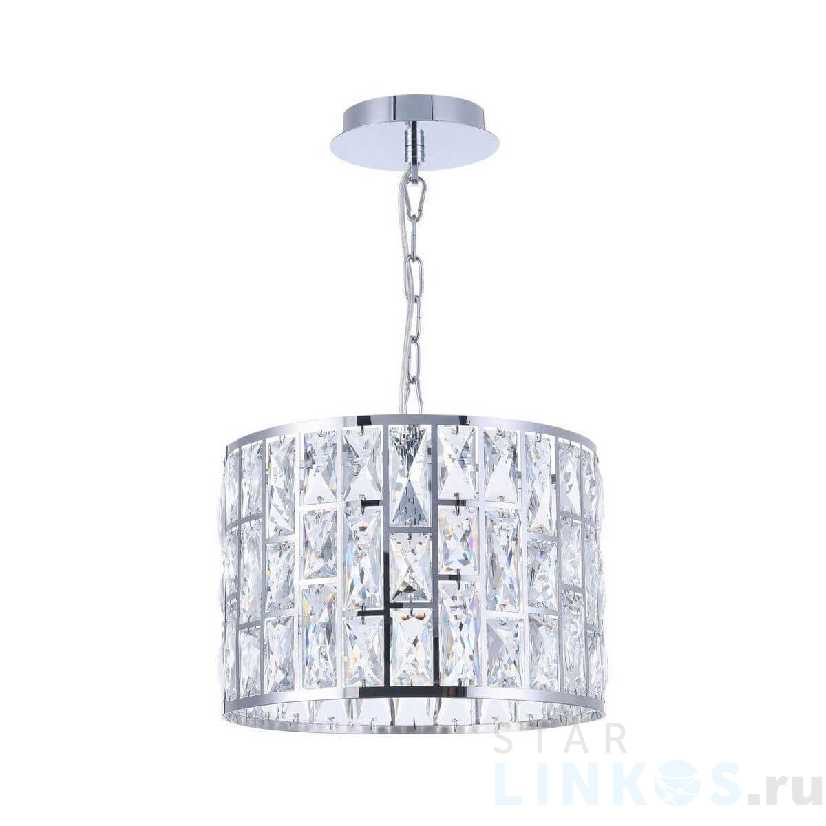 Поставщик рекомендует использовать лампы накаливания с цоколем E27 для освещения площади 3,3 м2. Подвесной светильник Maytoni Gelid MOD184-PL-01-CH в современном стиле используется в интерьере спальни с установкой на потолок.