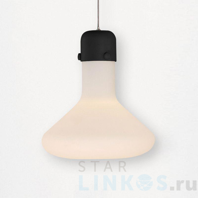 Поставщик рекомендует использовать лампы накаливания с цоколем E27 для освещения площади 5 м2. Подвесной светильник Moderli One V1700-1P в современном стиле используется в интерьере кухни с установкой на потолок.