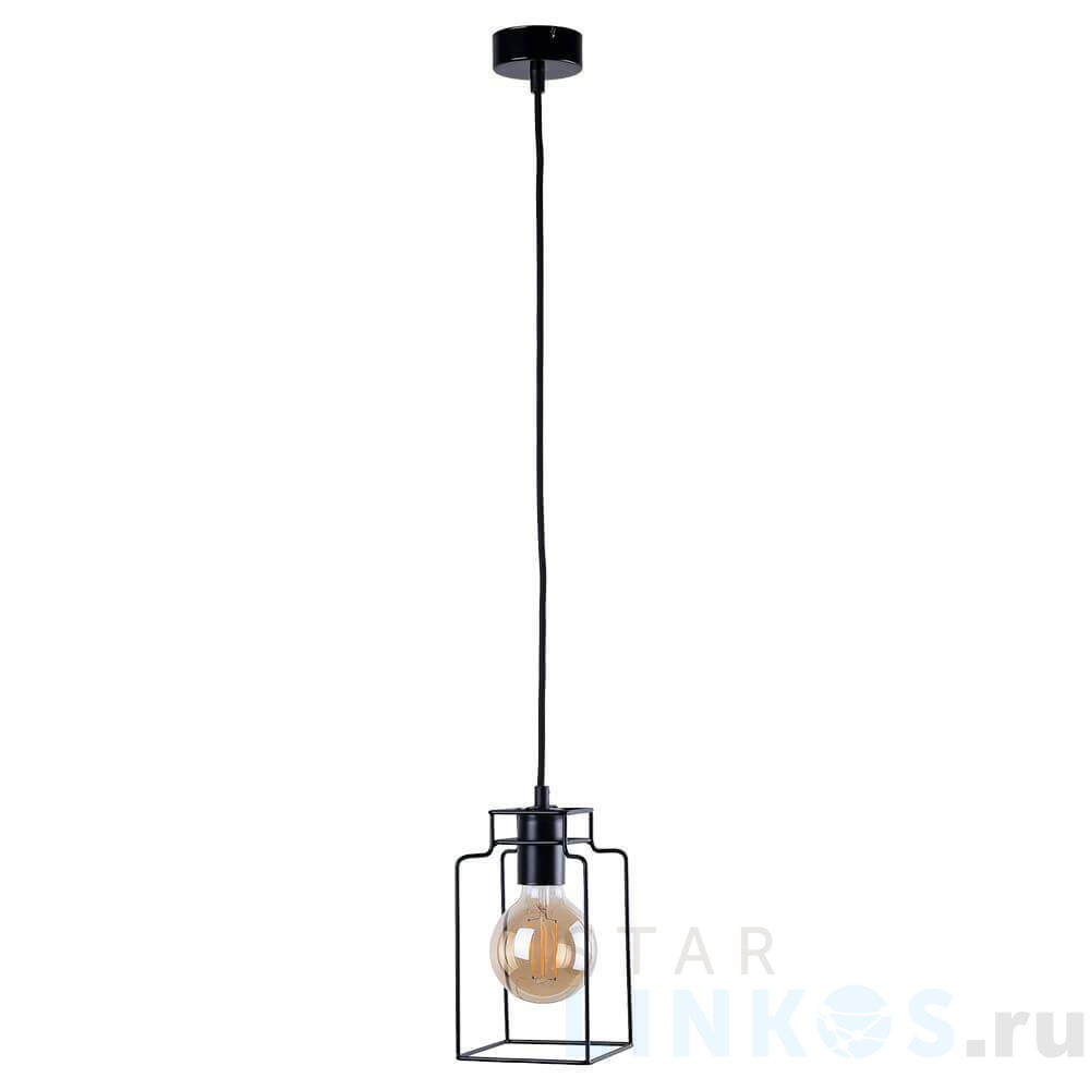 Поставщик рекомендует использовать лампы накаливания с цоколем E27 для освещения площади 3,3 м2. Подвесной светильник Nowodvorski Fiord 9668 в стиле лофт используется в интерьере кухни с установкой на потолок.