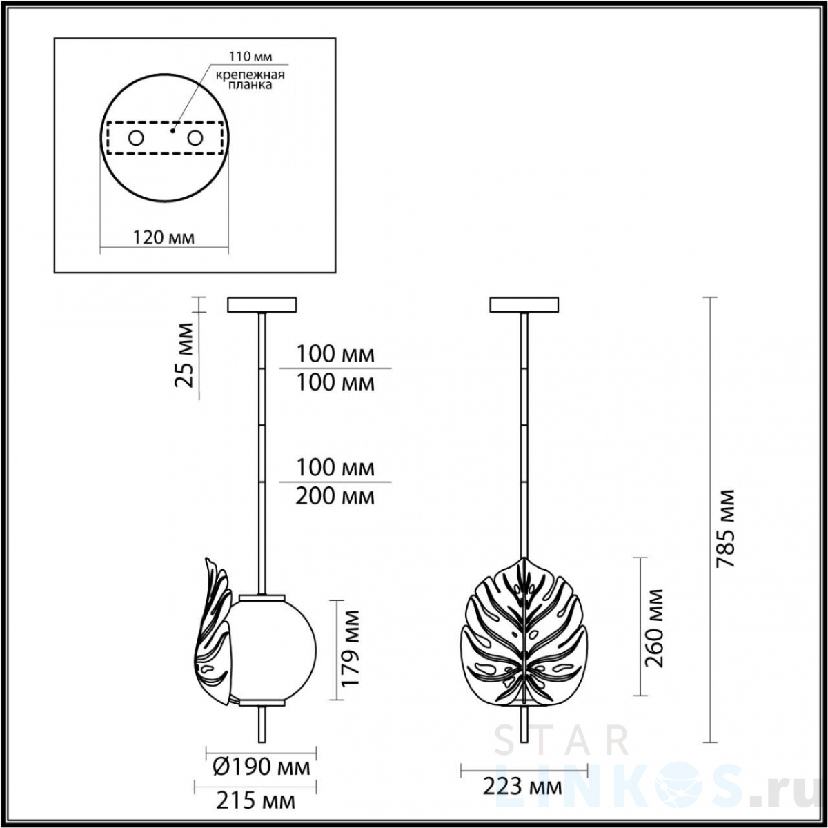 Поставщик рекомендует использовать лампы накаливания с цоколем E14 для освещения площади 2 м2. Подвесной светильник Odeon Light Modern Jungle 4865/1 в используется в интерьере кафе и ресторанов с установкой на потолок.