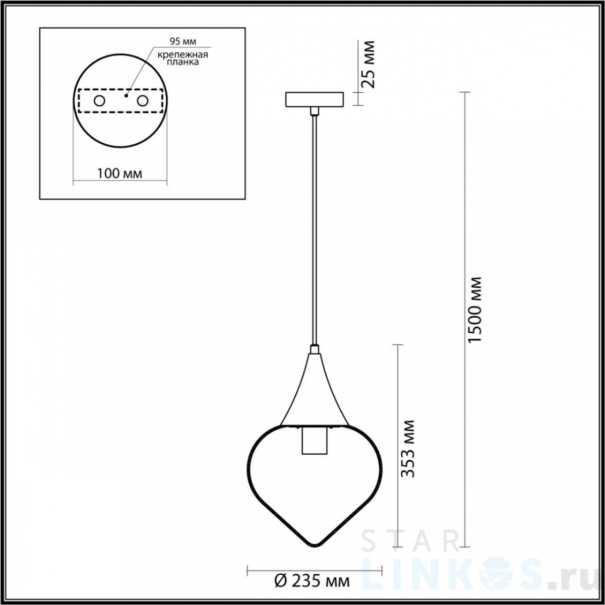 Поставщик рекомендует использовать лампы накаливания с цоколем E27 для освещения площади 3 м2. Подвесной светильник Odeon Light Pendant Kesta 4950/1 в используется в интерьере кухни с установкой на потолок.
