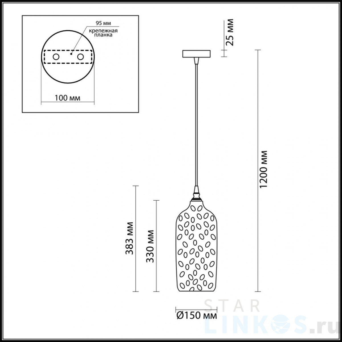 Поставщик рекомендует использовать лампы накаливания с цоколем E27 для освещения площади 3,3 м2. Подвесной светильник Odeon Light Pendant Sitora 4769/1 в используется в интерьере кухни с установкой на потолок.