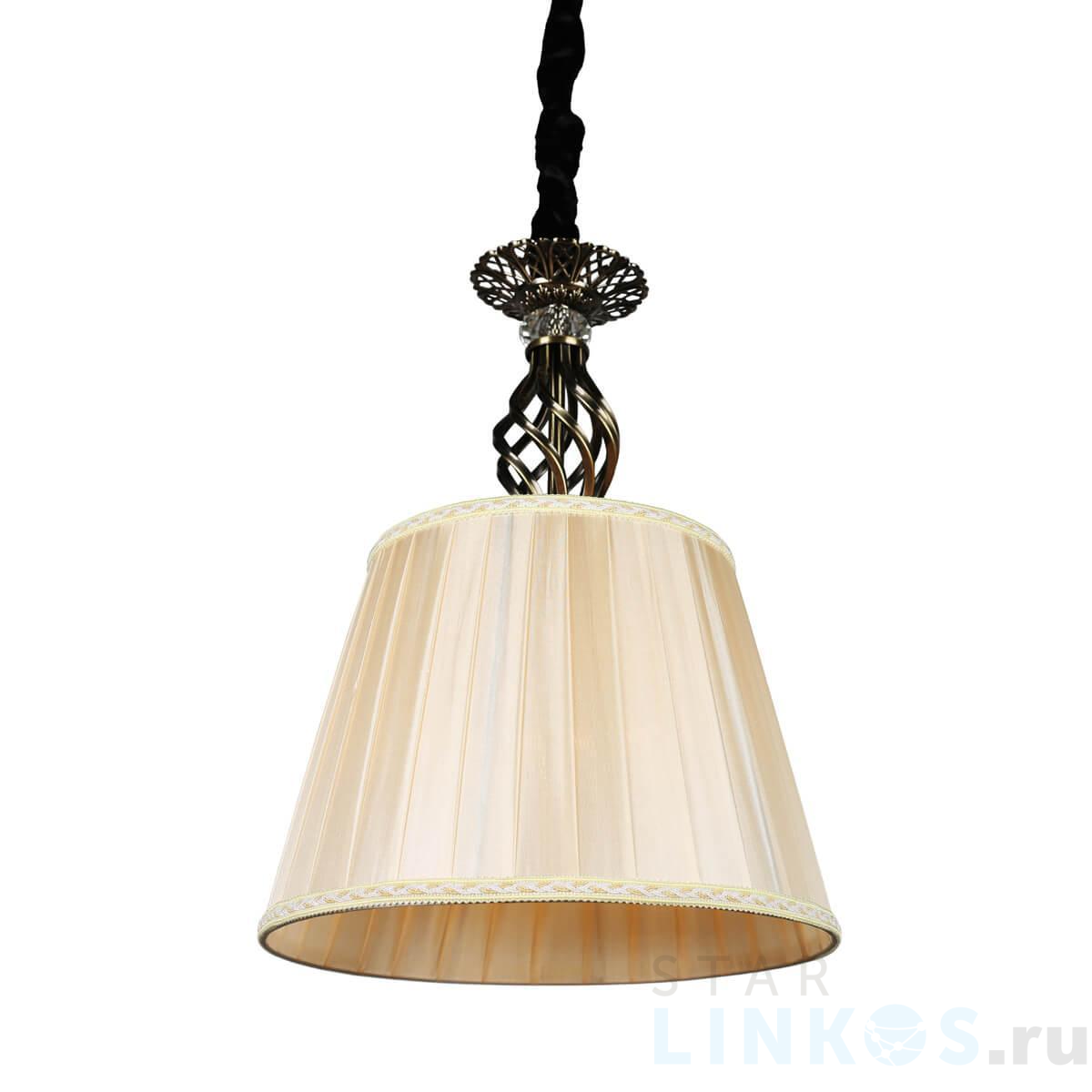 Поставщик рекомендует использовать лампы накаливания с цоколем E14 для освещения площади 3 м2. Подвесной светильник Omnilux Belluno OML-79116-01 в классическом стиле используется в интерьере спальни с установкой на потолок.