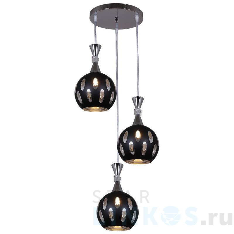 Поставщик рекомендует использовать лампы накаливания с цоколем E27 для освещения площади 24 м2. Подвесной светильник Reluce 03410-0.4-03 BK в используется в интерьере кафе и ресторанов с установкой на потолок.