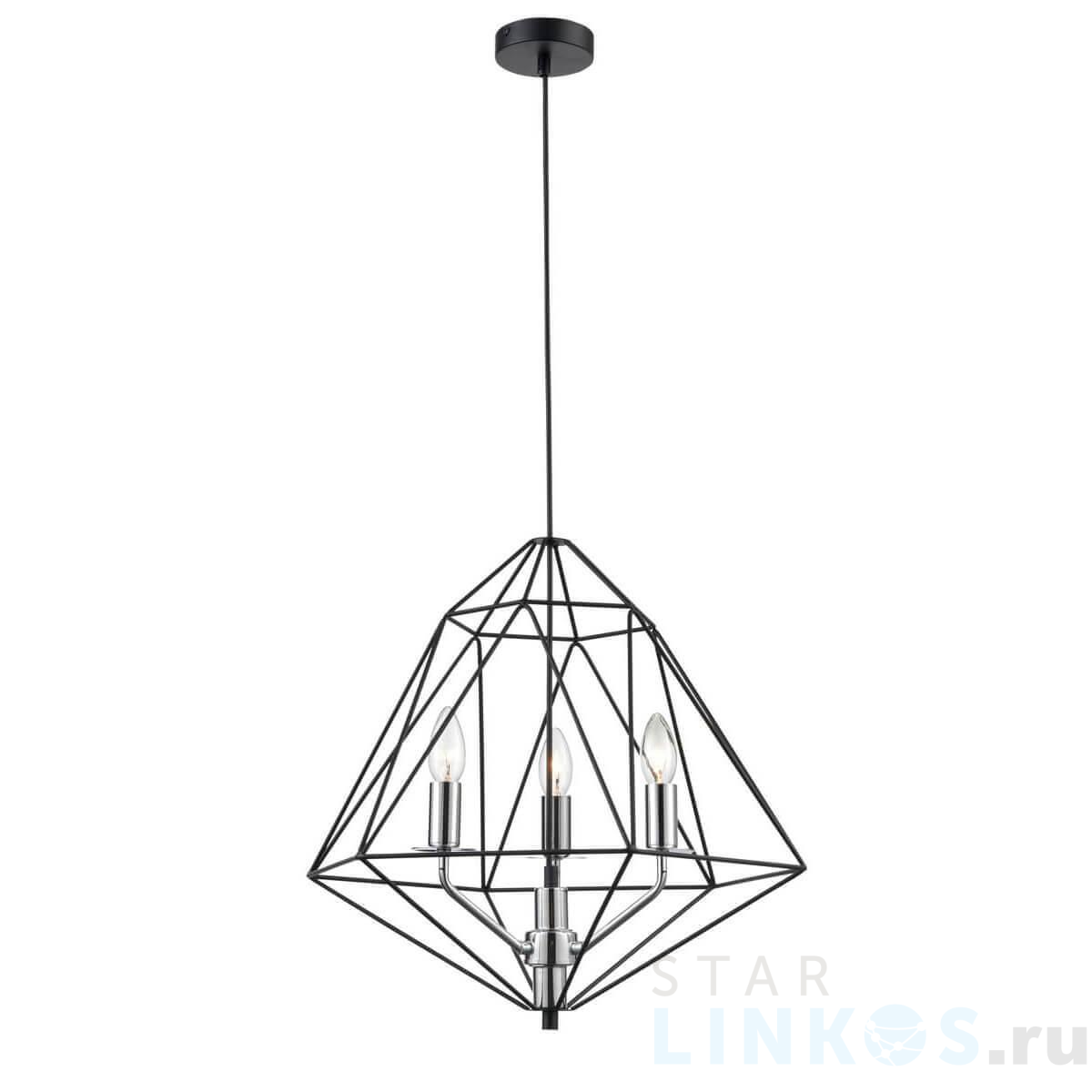 Поставщик рекомендует использовать лампы накаливания с цоколем E14 для освещения площади 6 м2. Подвесной светильник Vele Luce Bessie VL4022P03 в используется в интерьере гостиной с установкой на потолок.