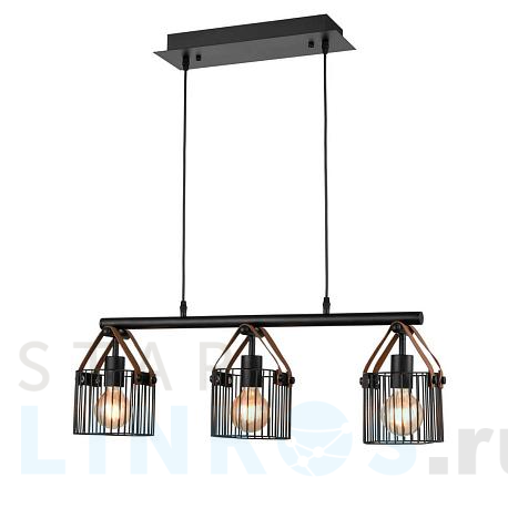 Поставщик рекомендует использовать лампы накаливания с цоколем E27 для освещения площади 10 м2. Подвесной светильник Vele Luce Drago VL6332P03 в стиле лофт используется в интерьере гостиной с установкой на потолок.