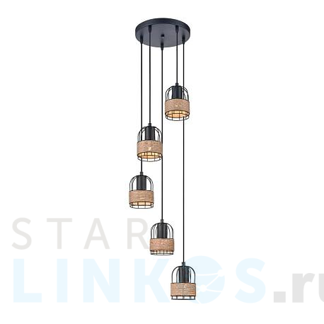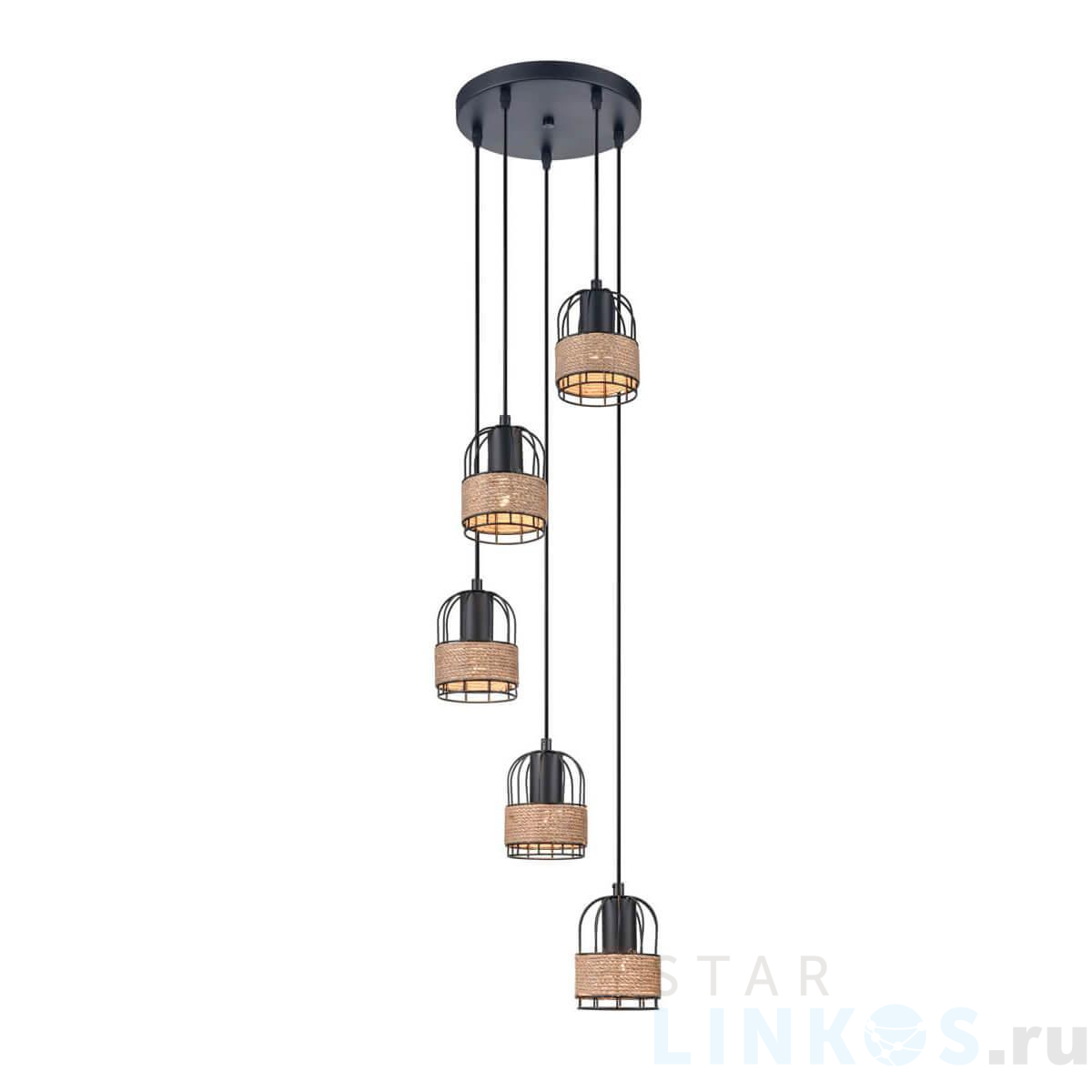 Поставщик рекомендует использовать лампы накаливания с цоколем E27 для освещения площади 8 м2. Подвесной светильник Vele Luce Extra VL6472P05 в стиле лофт используется в интерьере гостиной с установкой на потолок.