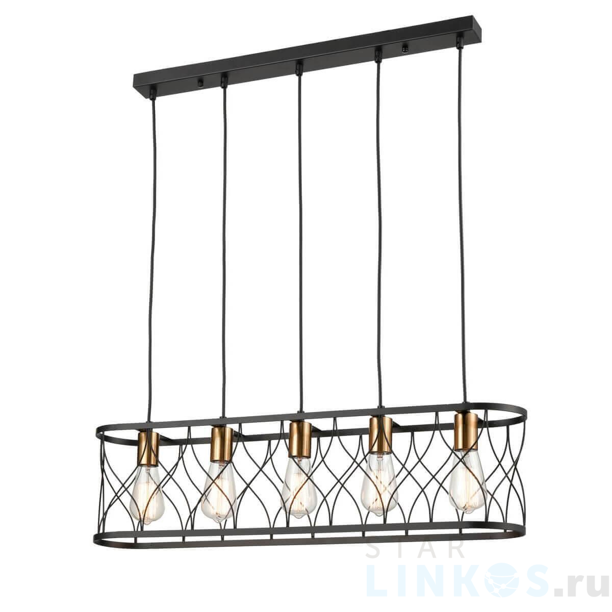 Поставщик рекомендует использовать лампы накаливания с цоколем E27 для освещения площади 8 м2. Подвесной светильник Vele Luce Ulik VL6242P05 в стиле лофт используется в интерьере гостиной с установкой на потолок.