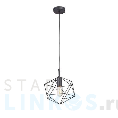 Поставщик рекомендует использовать лампы накаливания с цоколем E27 для освещения площади 3 м2. Подвесной светильник Vitaluce V3937-1/1S в стиле лофт используется в интерьере кухни с установкой на потолок.