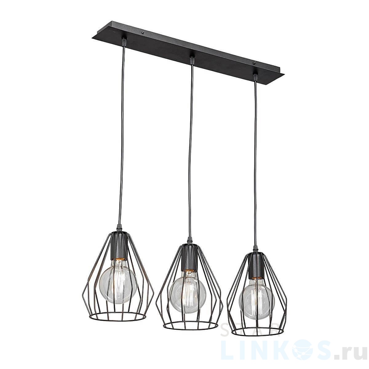 Поставщик рекомендует использовать лампы накаливания с цоколем E27 для освещения площади 10 м2. Подвесной светильник Vitaluce V4383-1/3S в стиле лофт используется в интерьере гостиной с установкой на потолок.