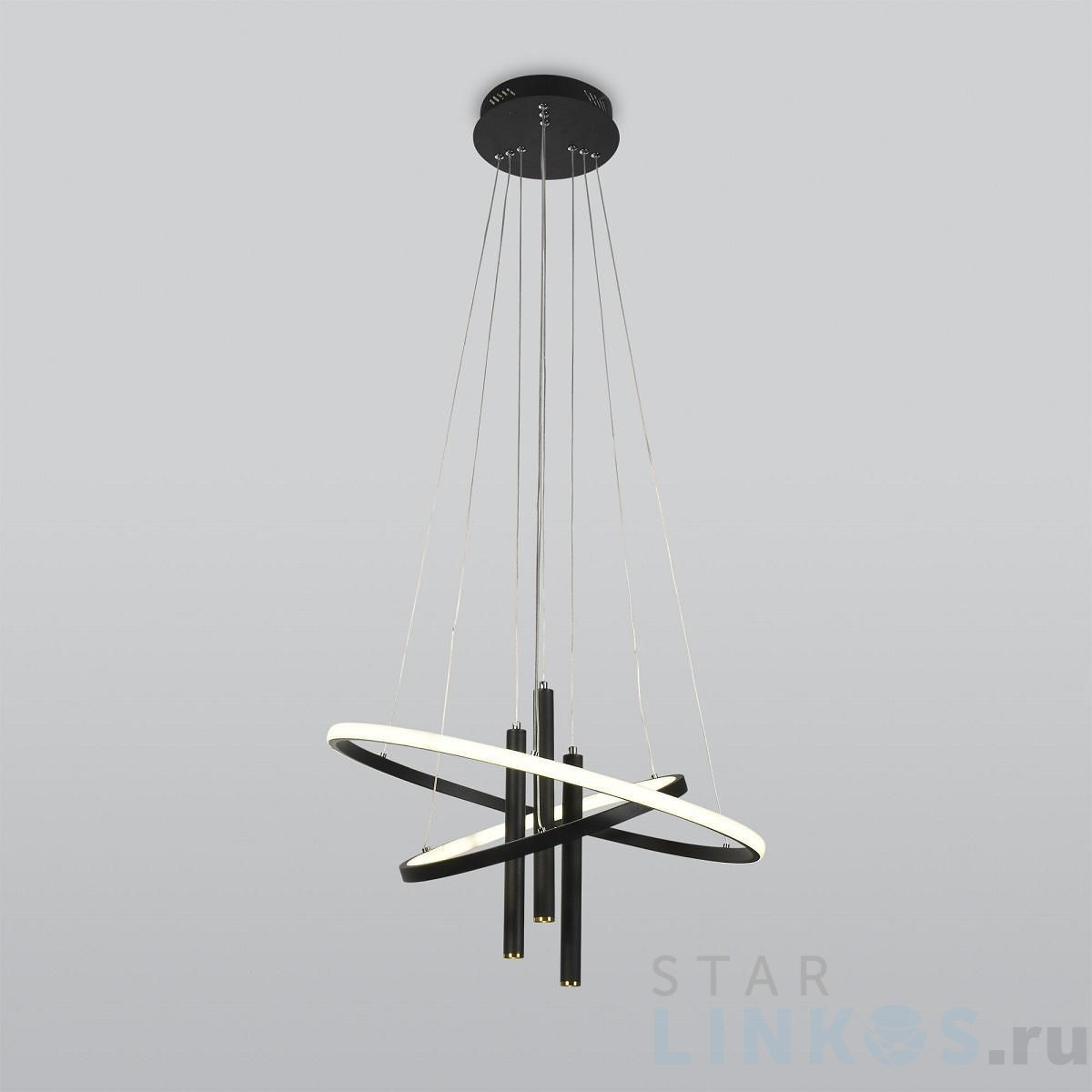 Подвесной светодиодный светильник Eurosvet Stroke 90270/3 черный в стиле Хай-Тек используется в интерьере гостиной с установкой на потолок.