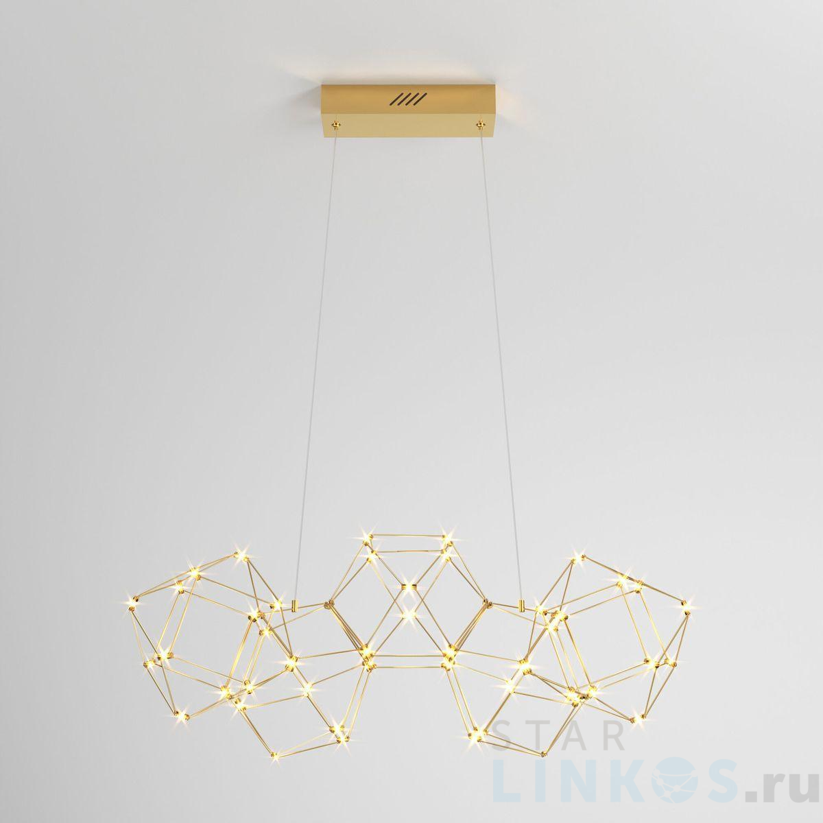 Подвесной светодиодный светильник Eurosvet Uma 90168/5 медь в стиле Хай-Тек используется в интерьере гостиной с установкой на потолок.