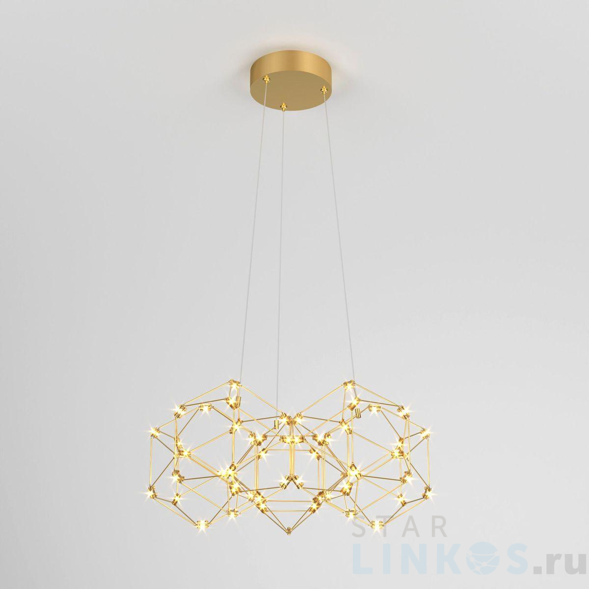 Подвесной светодиодный светильник Eurosvet Uma 90169/5 медь в стиле Хай-Тек используется в интерьере гостиной с установкой на потолок.