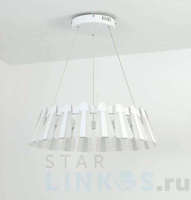 Подвесной светодиодный светильник Moderli Beauty V2410-PL в стиле Хай-Тек используется в интерьере гостиной с установкой на потолок.