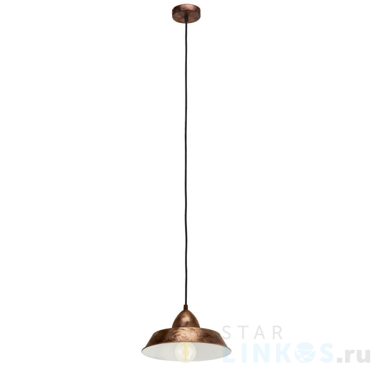 Поставщик рекомендует использовать лампы накаливания с цоколем E27 для освещения площади 3,3 м2. Подвесной светильник Eglo Vintage 49243 в стиле лофт используется в интерьере кафе и ресторанов с установкой на потолок.