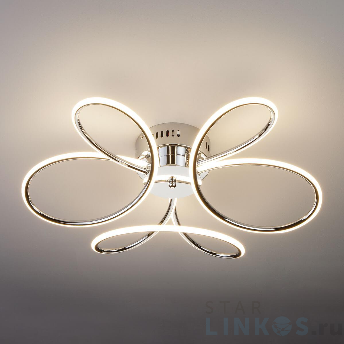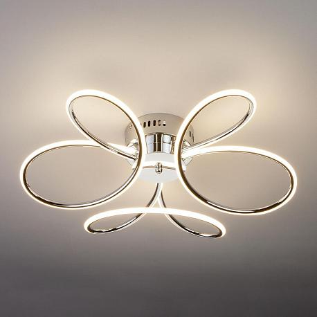 Потолочный светильник Eurosvet 90083/3 хром в стиле Хай-Тек используется в интерьере гостиной с установкой на потолок.