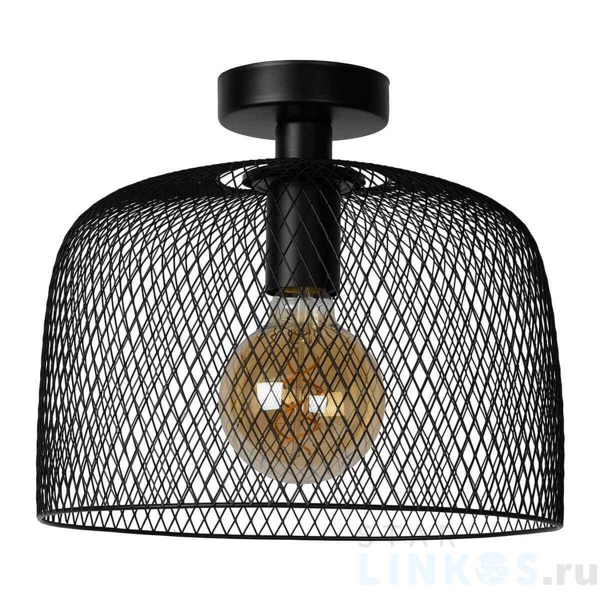 Поставщик рекомендует использовать лампы накаливания с цоколем E27. Потолочный светильник Lucide Mesh 43104/30/30 в стиле лофт используется в интерьере кухни с установкой на потолок.