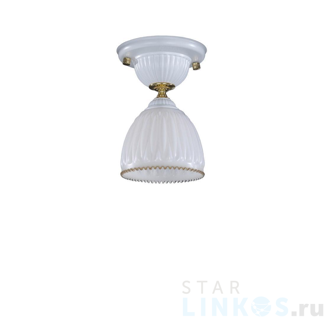 Поставщик рекомендует использовать лампы накаливания с цоколем E27 для освещения площади 3 м2. Потолочный светильник Reccagni Angelo PL.9601 в классическом стиле используется в интерьере прихожей с установкой на потолок.